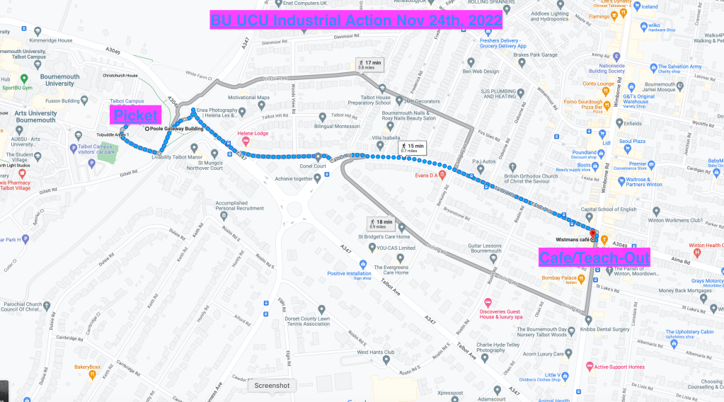 Comrades, here is a map with the picket location and the location for the afternoon Teach-Out.