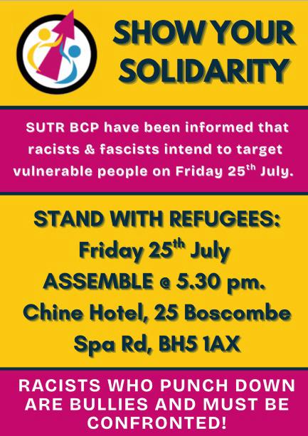 SUTR BCP have been informed that racists & fascists intend to target vulnerable people on Friday 25th July.