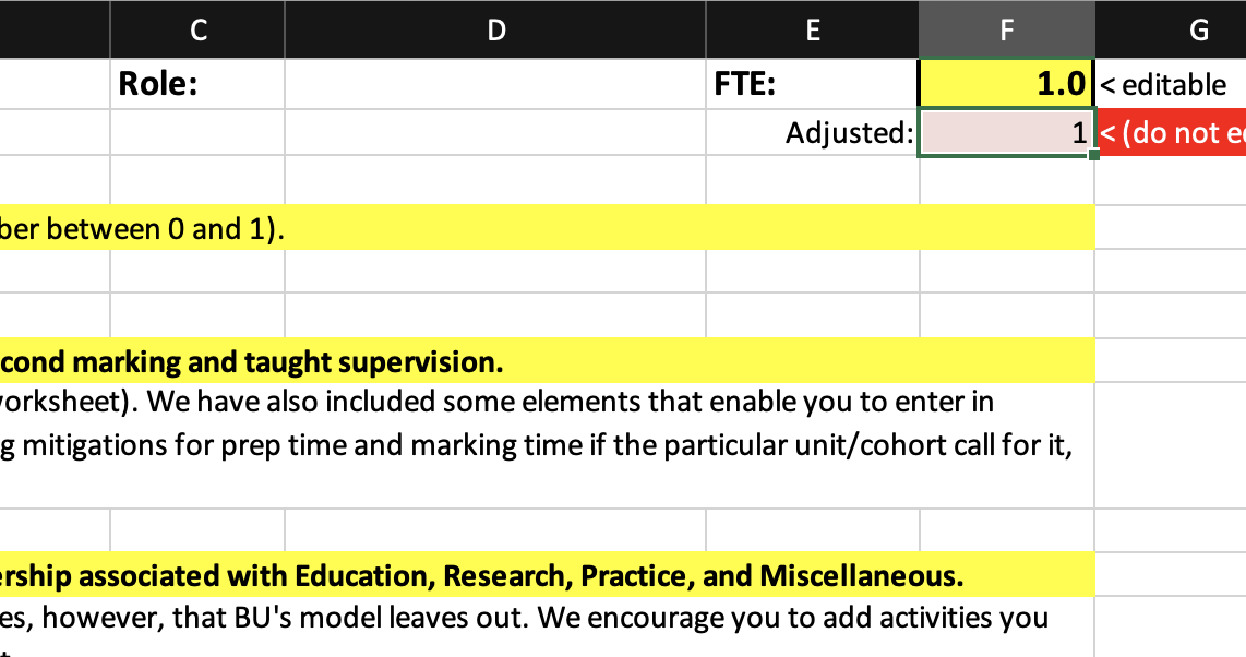 - FTE Field: Enter your actual FTE (e.g., 0.8 for 80%). Do not edit any red-highlighted fields.