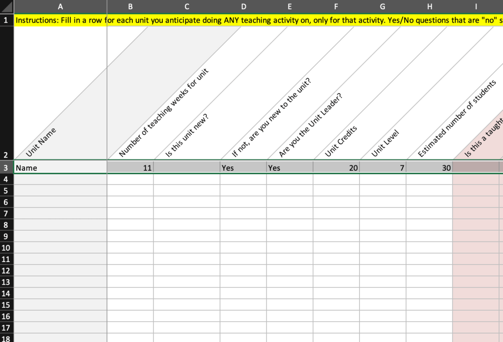 - Space for assessments is to the RIGHT of the pink calculated columns